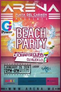 Miercoles 29 de enero del 2014 Festival Arena presenta G Power – Beach Party  @ Kool Beach Playa del Carmen
