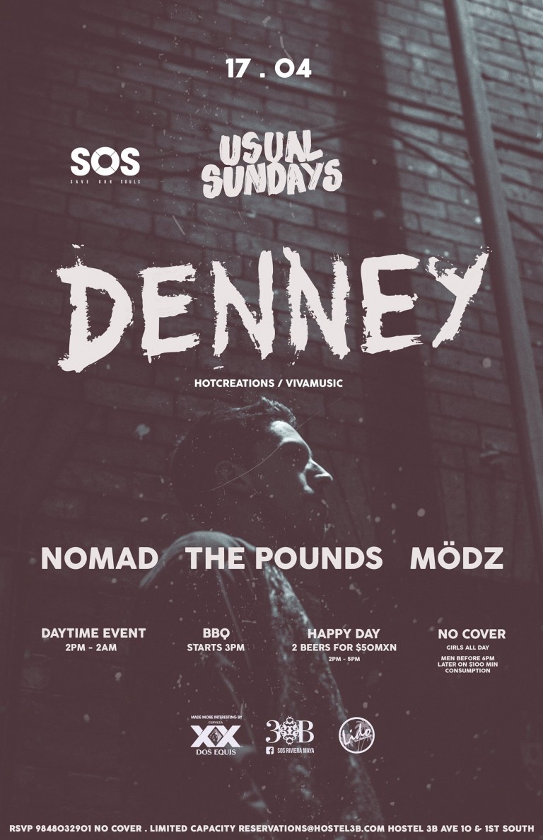 EventosDenney @ SOS Lounge Domingo 17 de abril del 2016 Denney @ SOS Lounge – Playa del Carmen 12:00 pm Warm Up: Nomad The PoundsVer tambiénSemana de Eventos @ RufinoPor VivaPlayaEn Eventos Mödz