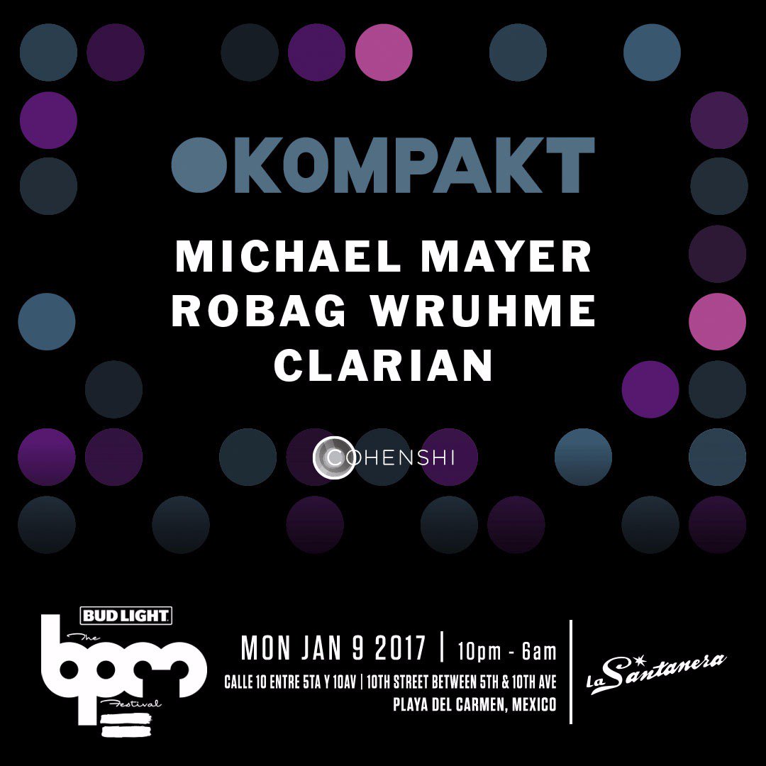 En Colonia Alemania se fundó esta disquera comandada por Michael Mayer y que se ha caracterizado por lanzar música inolvidable y siempre destacada en el medio underground además de firmar artistas que han convertido a este sello en una marca auditiva para djs y productores. Este showcase a pesar de estar anteriormente en el festival vuelve a incluirse este año y se presenta en la Santanera en una noche con el debut de Robag Wruhme en el caribe y Clarian.
