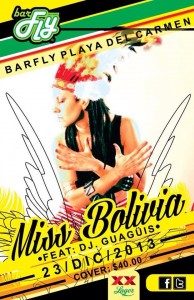 EventosMiss Bolivia @ Bar Fly Lunes 23 de diciembre del 2013 Miss Bolivia @ Bar Fly – Playa del Carmen Dj Güagüis Ver tambiénCarrera Paint & Run @ Playa del CarmenPor VivaPlayaEn Eventos *Cover : $40 pesos Seguir a @Viva_Playa