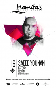 EventosSaeed Younan @ Mamitas Beach Club Sábado 16 de noviembre del 2013 Saeed Younan @ Mamitas Beach Club – Playa del Carmen 12:00 pm – 8:00 pm Warm Up: Ver tambiénMarcus Worgull @ La MezcalinnaPor VivaPlayaEn Eventos Estevan Seguir a @Viva_Playa