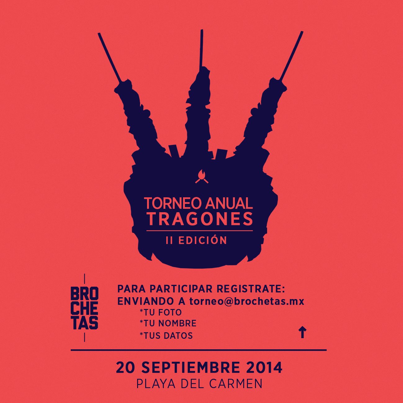 Brochetas presenta su segundo torneo anual de tragones que se llevará acabo el sábado 20 de septiembre del 2014 en Playa del Carmen, para registrarte como participante, debes enviar un correo con tu información a [email protected]