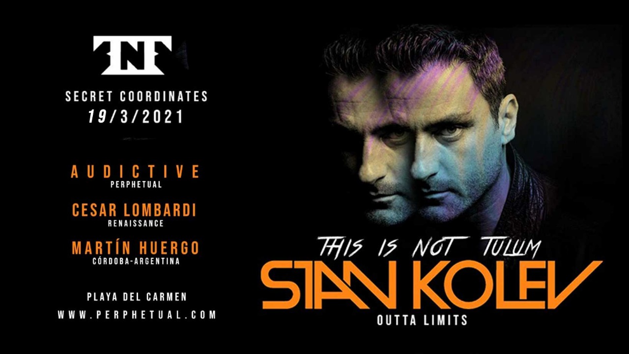 Para este Viernes 19 de Marzo, This is not Tulum que apunta a ser una fiesta de larga duración, además de contar con el estelar Stan Kolev, le acompañan en el line up el mexicano Audictive de Perphetual Music y la presencia argentina de Cesar Lombardi y Martin Huergo, ambos talentos de Córdoba.